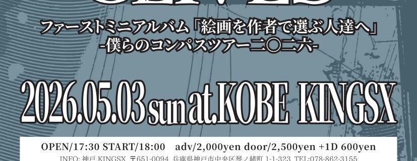 2026/05/03(Sun) 神戸KINGSX フジプレ vol.278 OLIVES ファーストミニアルバム 「絵画を作者で選ぶ人達へ」 僕らのコンパスツアー二〇二六 OPEN 17:30 START 1 …